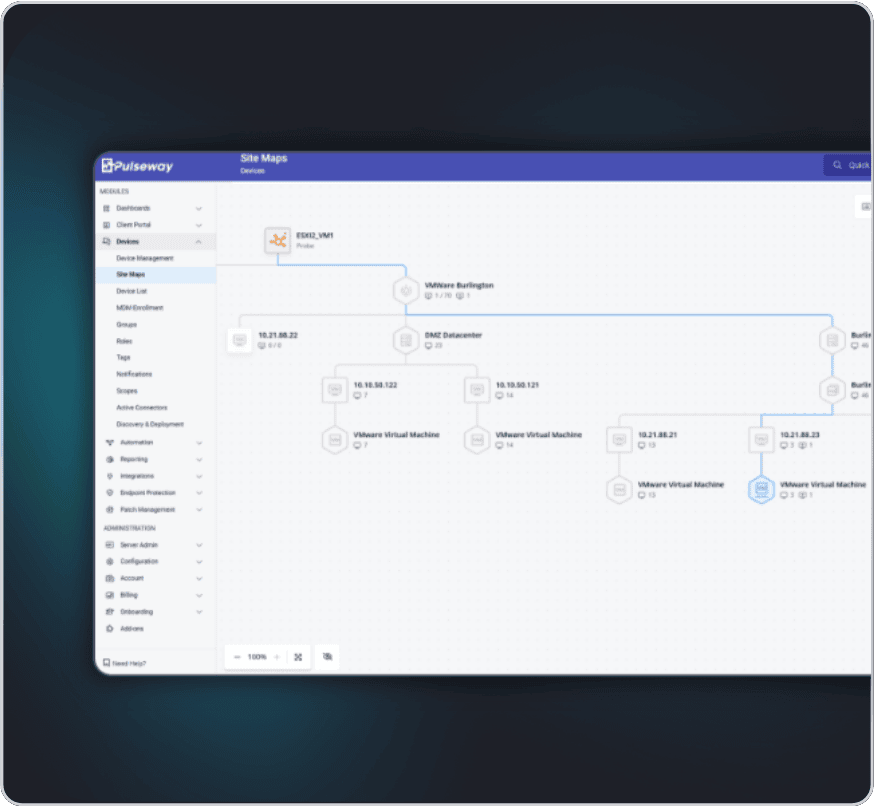 Instantly discover network devices and see how everything connects with auto-generated topology maps. Customize layouts, group devices, and create a live, visual map that makes managing complex networks simple.